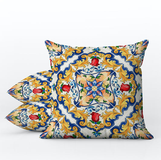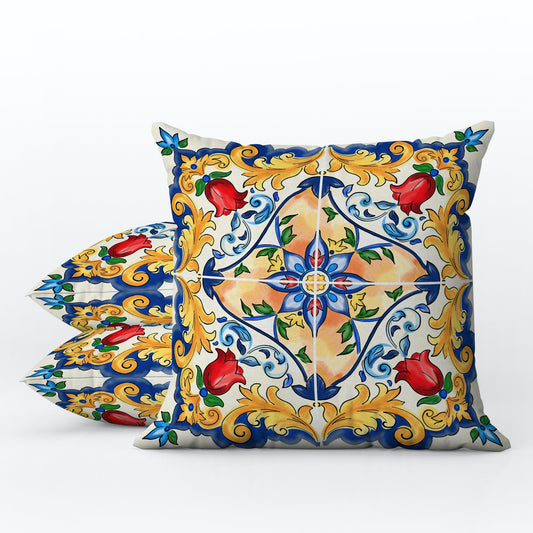 Porto Outdoor Pillows Mediterranean Blue & Golden Cream
