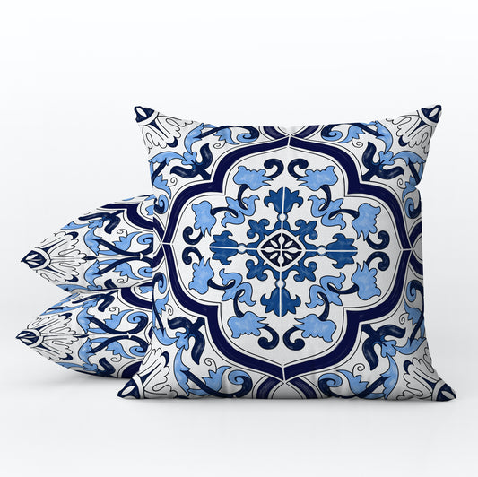 Salerno Outdoor Pillows Mediterranean Blue & White