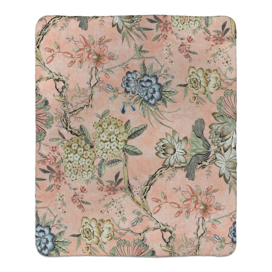 Belvedere Light Peach Pink Chintz Floral Fleece Lined Blanket