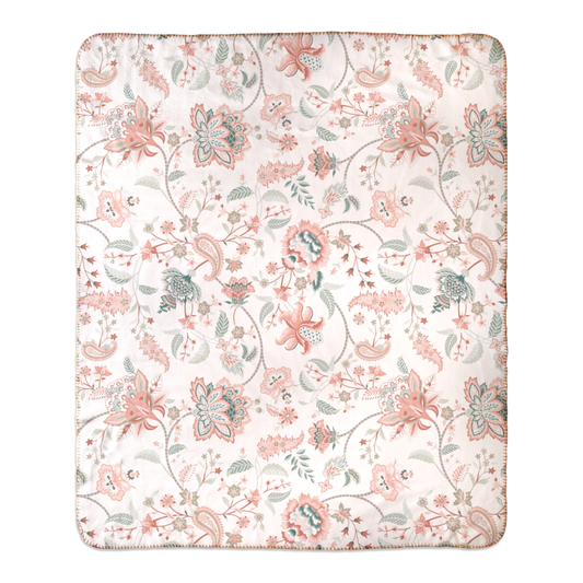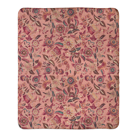 Coromandel Pink Chintz Floral Fleece Lined Blanket