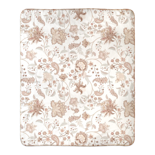 Belvedere Beige Rose Chintz Floral Fleece Lined Blanket