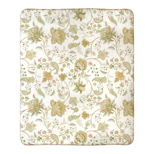 Belvedere Light Green Chintz Floral Fleece Lined Blanket