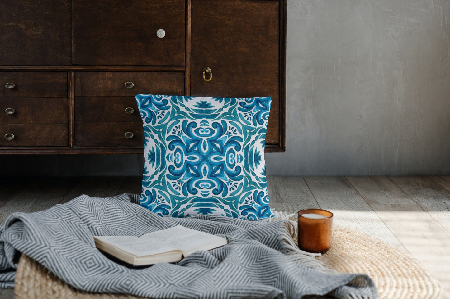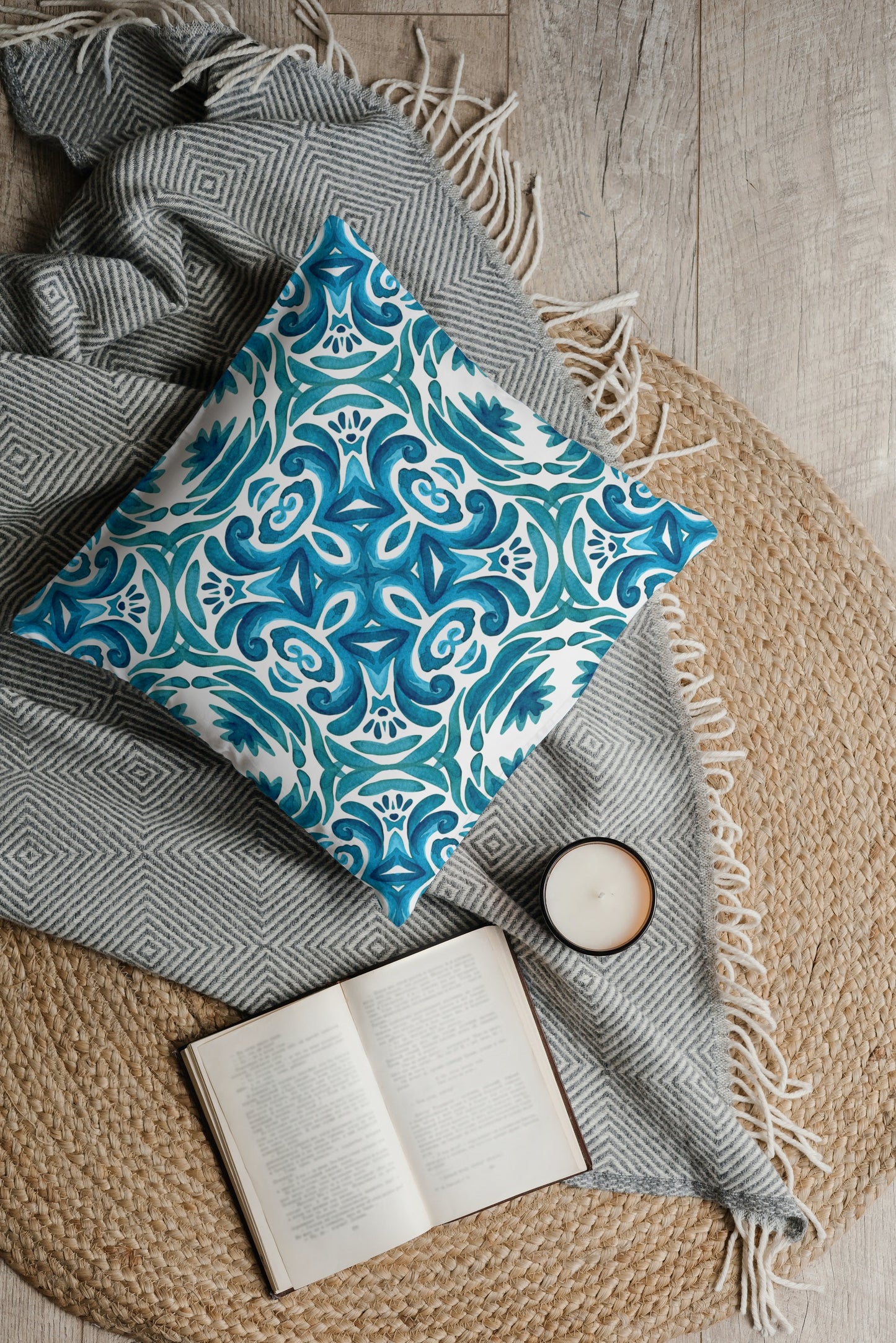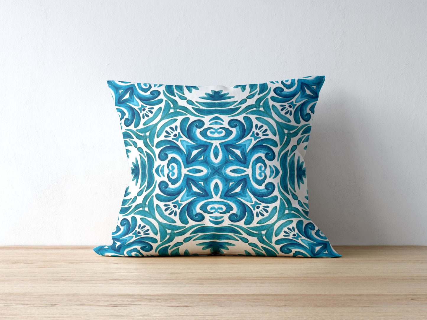 Sagres Outdoor Pillows Aqua Blue Green & White