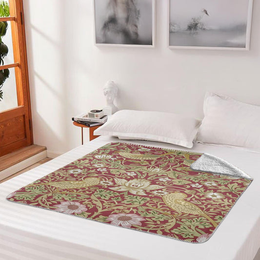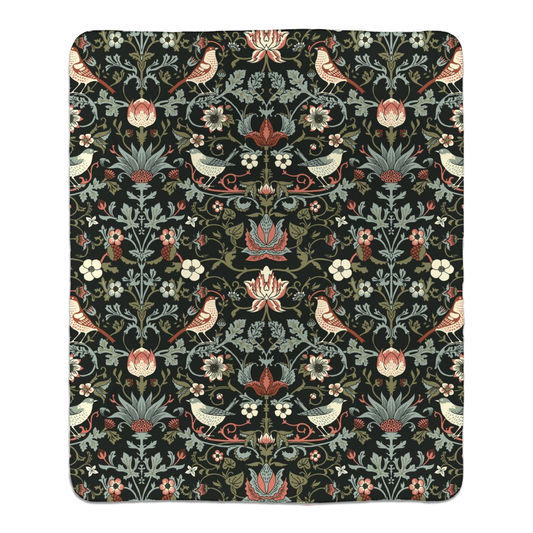 William Morris Enchanted Strawberry Thief Fleece Lined Blanket