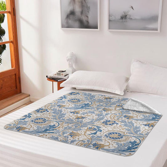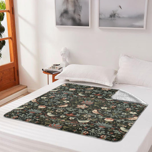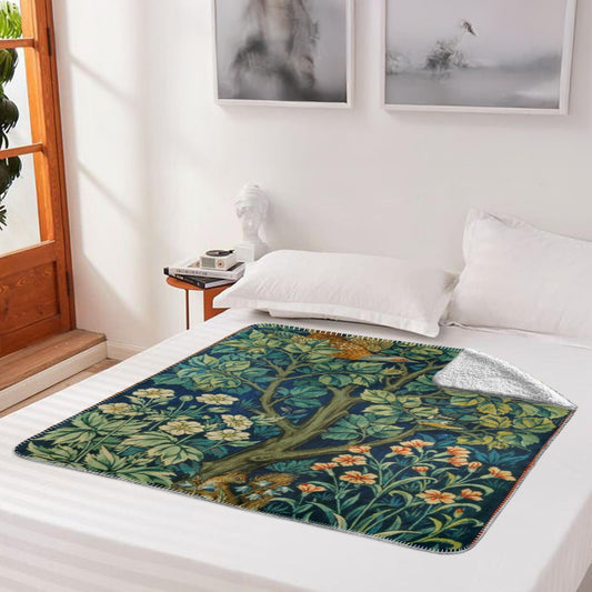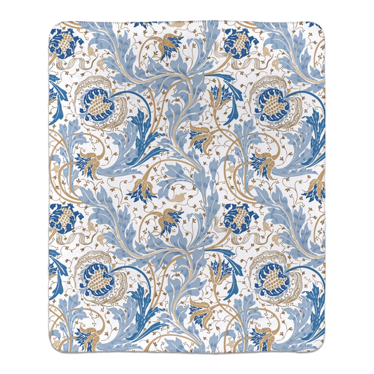 William Morris Floral Blue Green Fleece Lined Blanket