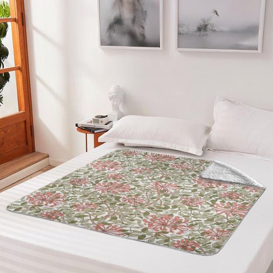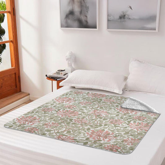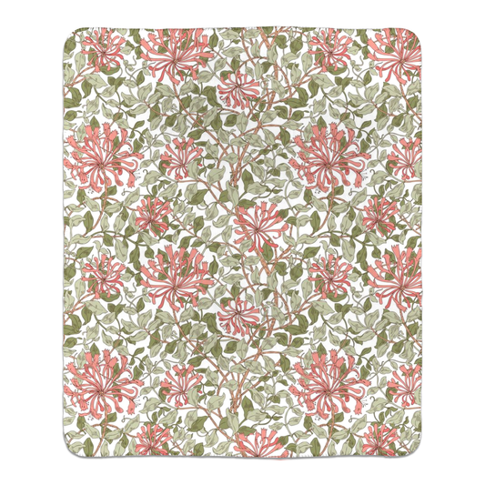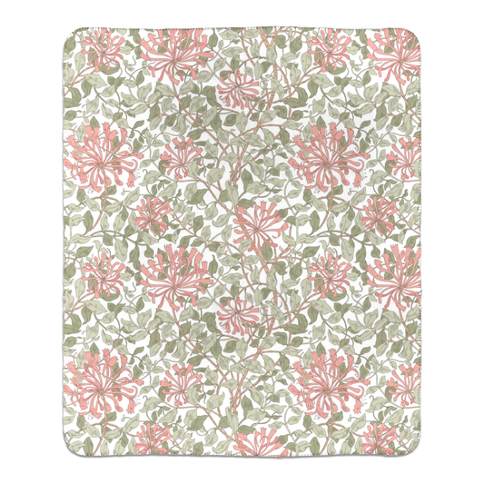 William Morris Honeysuckle Light Pink Green Fleece Lined Blanket