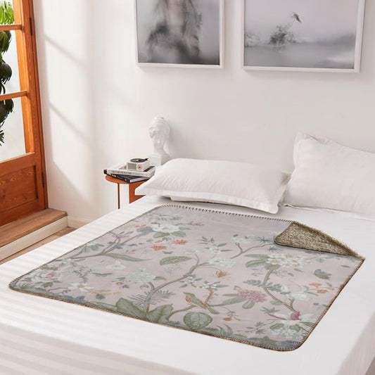 Chinoiserie Floral Dove Gray Fleece Lined Blanket