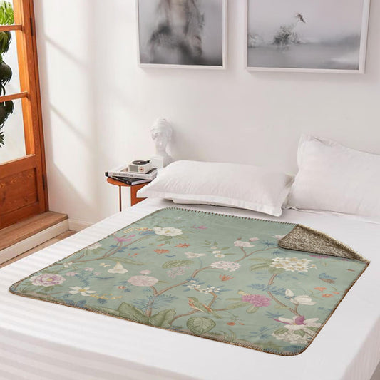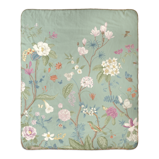 Chinoiserie Floral Sage Green Fleece Lined Blanket