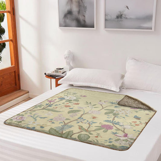 Chinoiserie Floral Lemon Yellow Fleece Lined Blanket