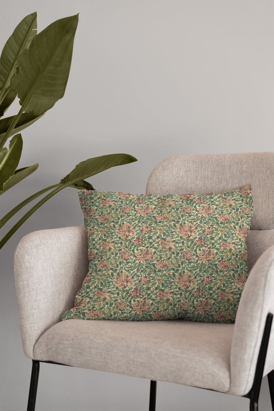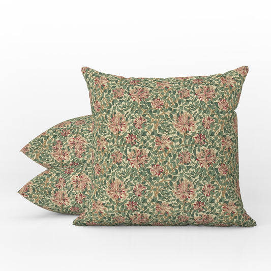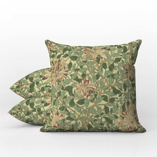William Morris Outdoor Pillows Honeysuckle Pink Green