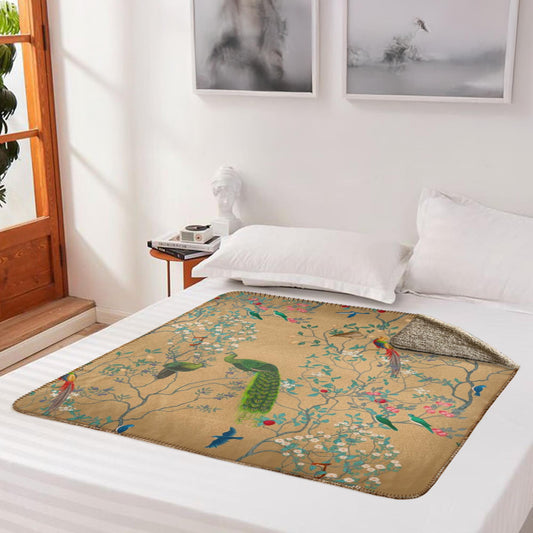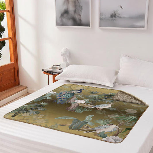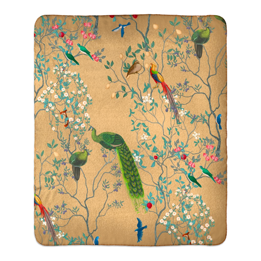Chinoiserie Golden Peacock Fleece Lined Blanket
