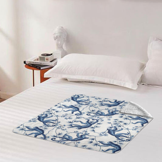 Chinoiserie Monkey Tree Blue Fleece Lined Blanket