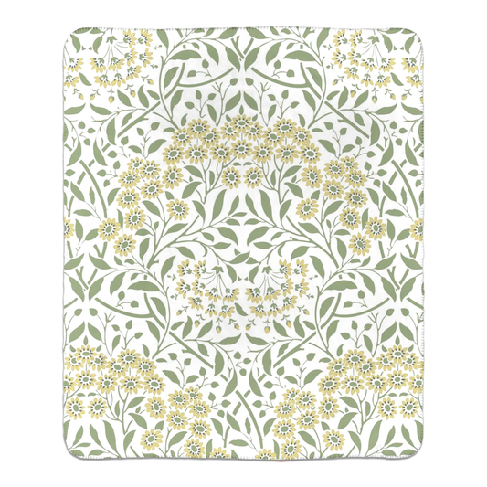 William Morris Floral Yellow Green Fleece Lined Blanket