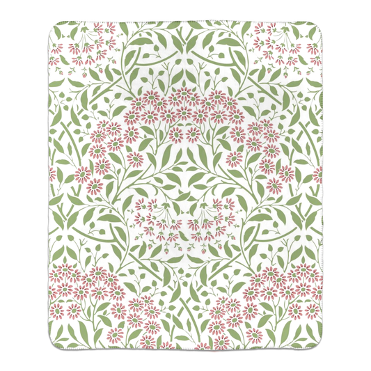 William Morris Floral Pink Green Fleece Lined Blanket