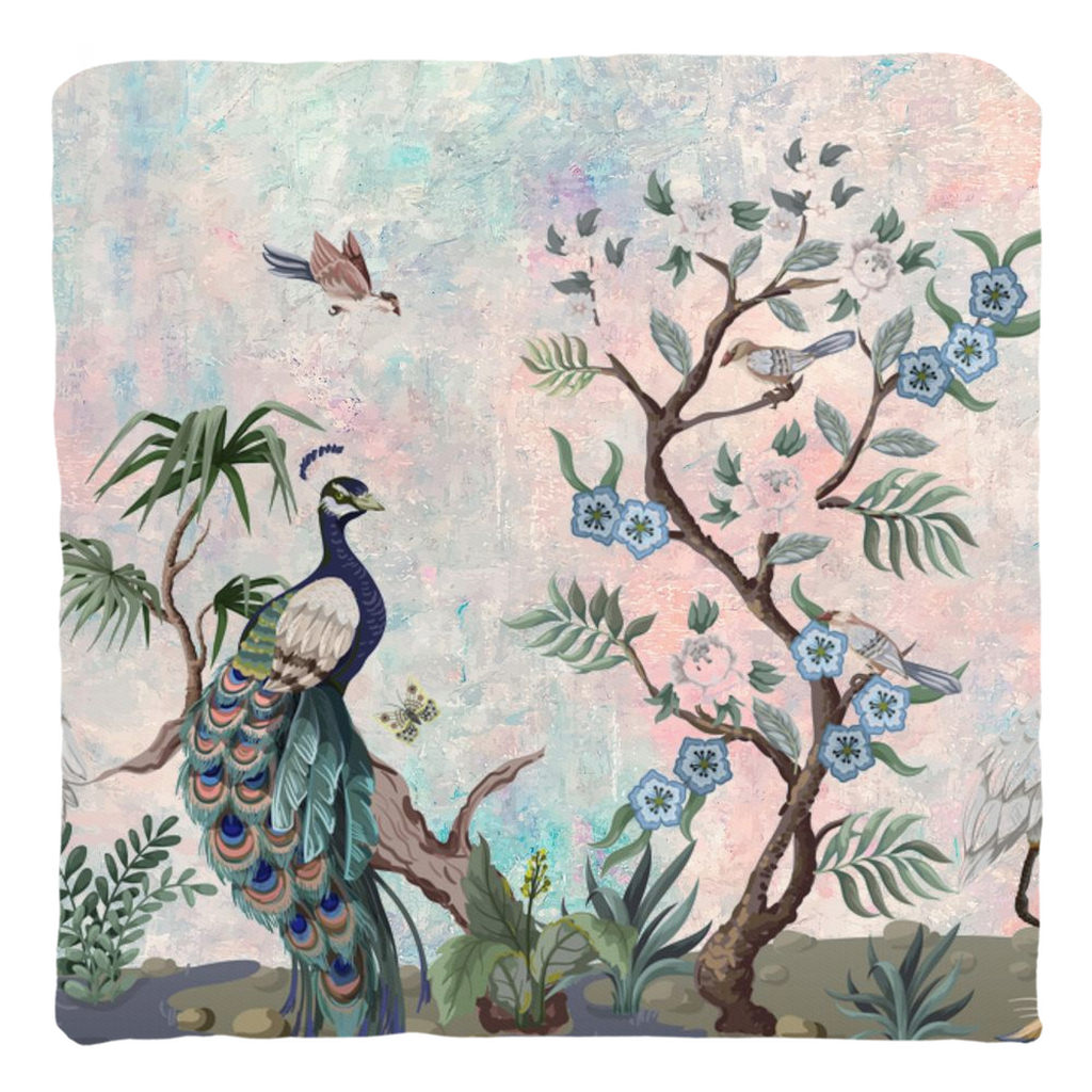 Chinoiserie Cotton Pillows Aqua Blush Peacock