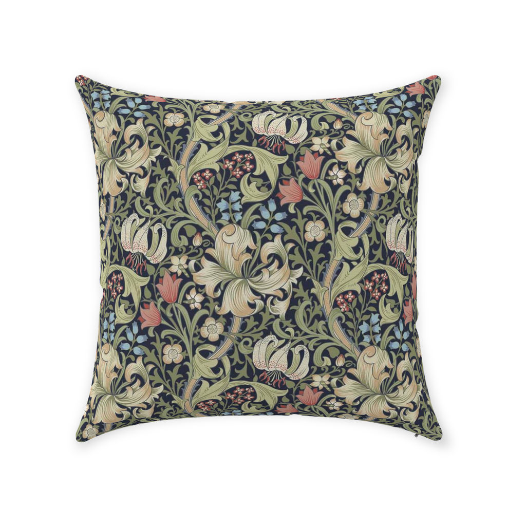 Golden Lily Cotton Throw Pillows William Morris Black Green