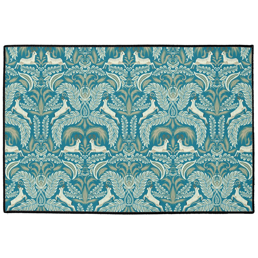 Magical Woodland Deer Indoor/Outdoor Floor Aqua Blue Green