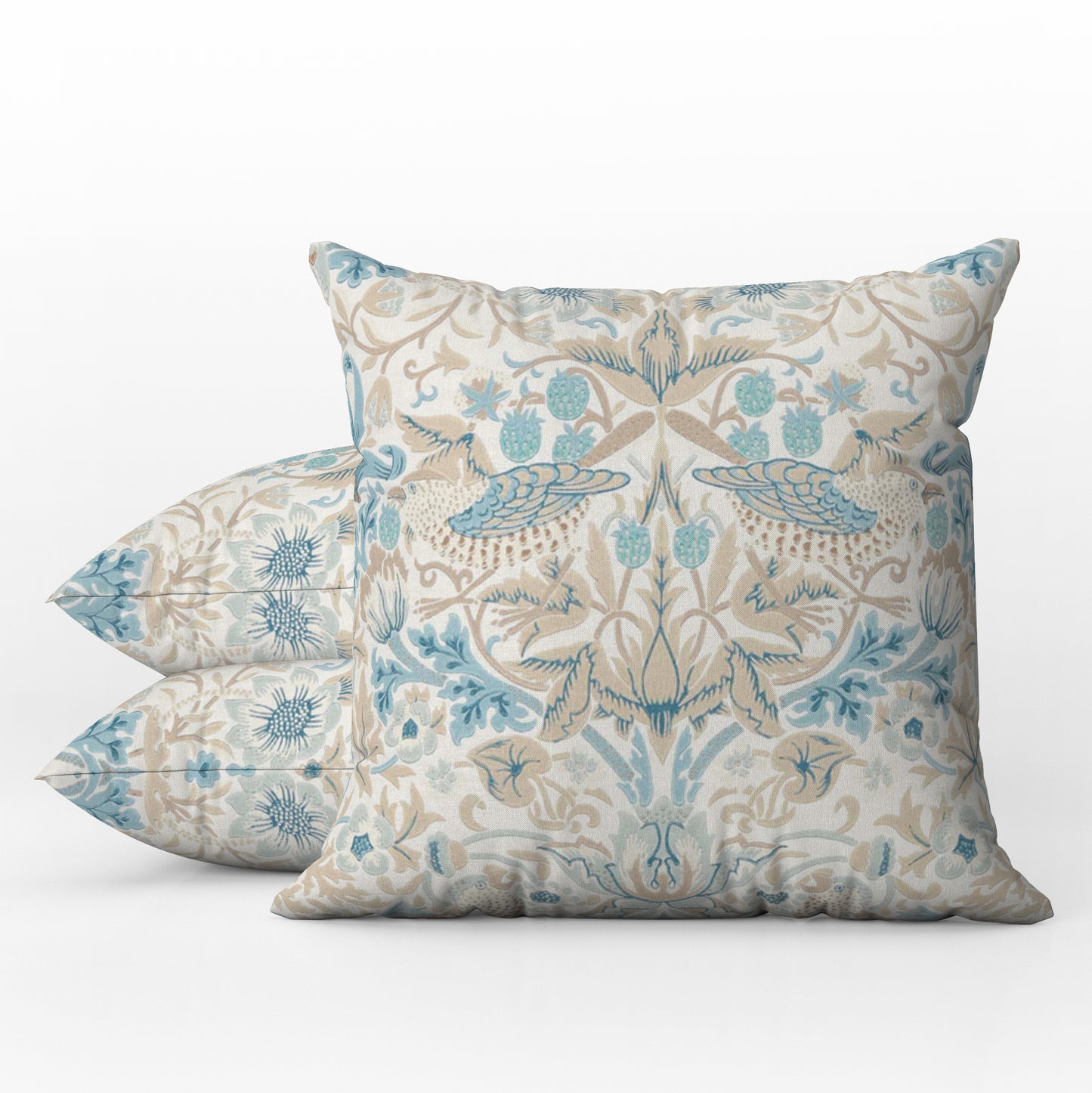 Strawberry Thief Outdoor Pillow William Morris Blue Slate Vellum