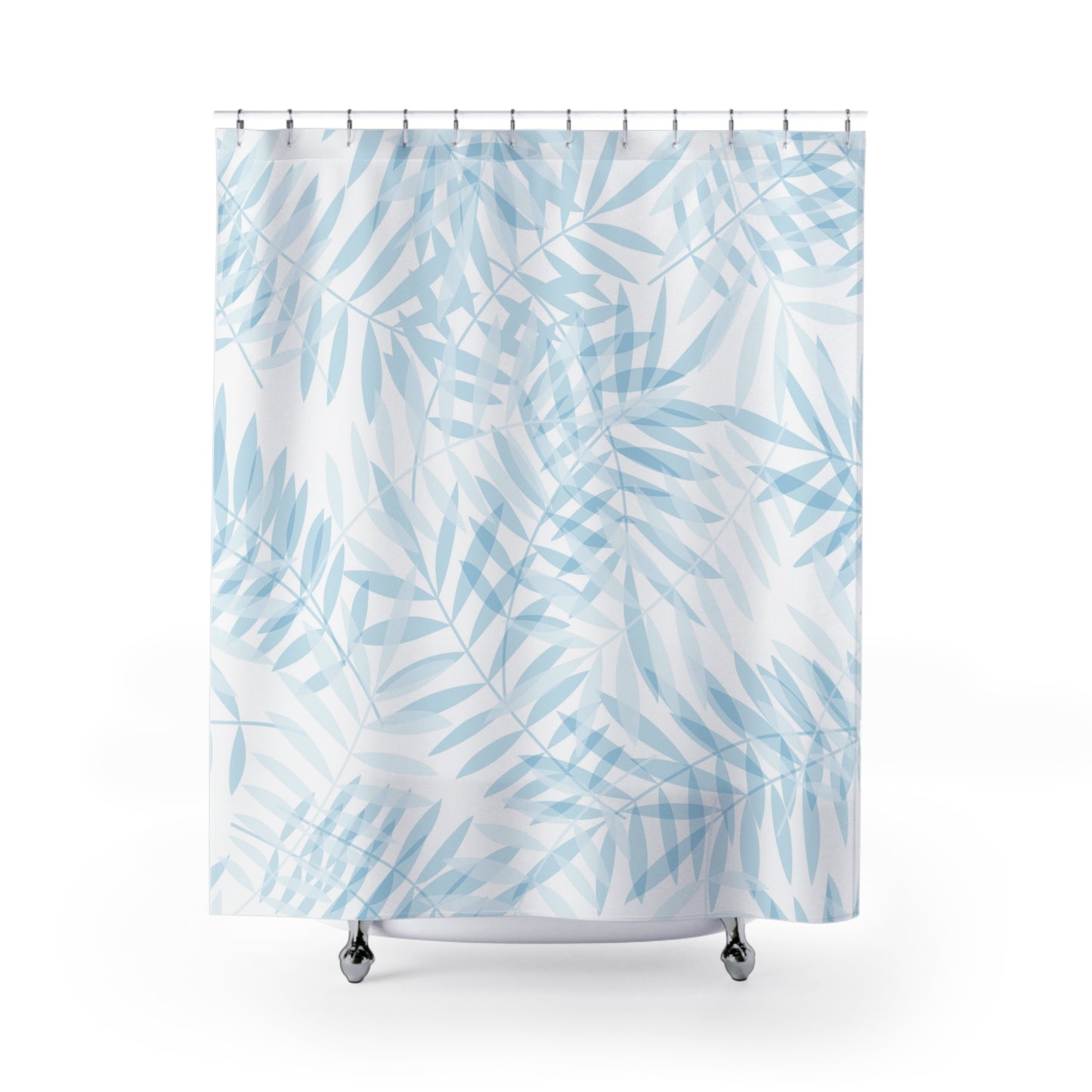 Add a touch of style to your bathroom with our unique shower curtains. This beautiful tropical palm leaf design in light blue and white will add a touch of timeless elegance and charm to your home.