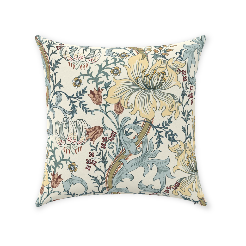 William Morris Cotton Pillows Enchanted Golden Lily Blue