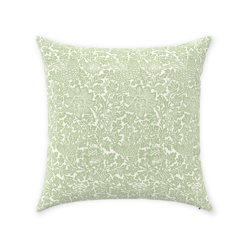 William Morris Cotton Pillows Sage Green Bird & Anemone