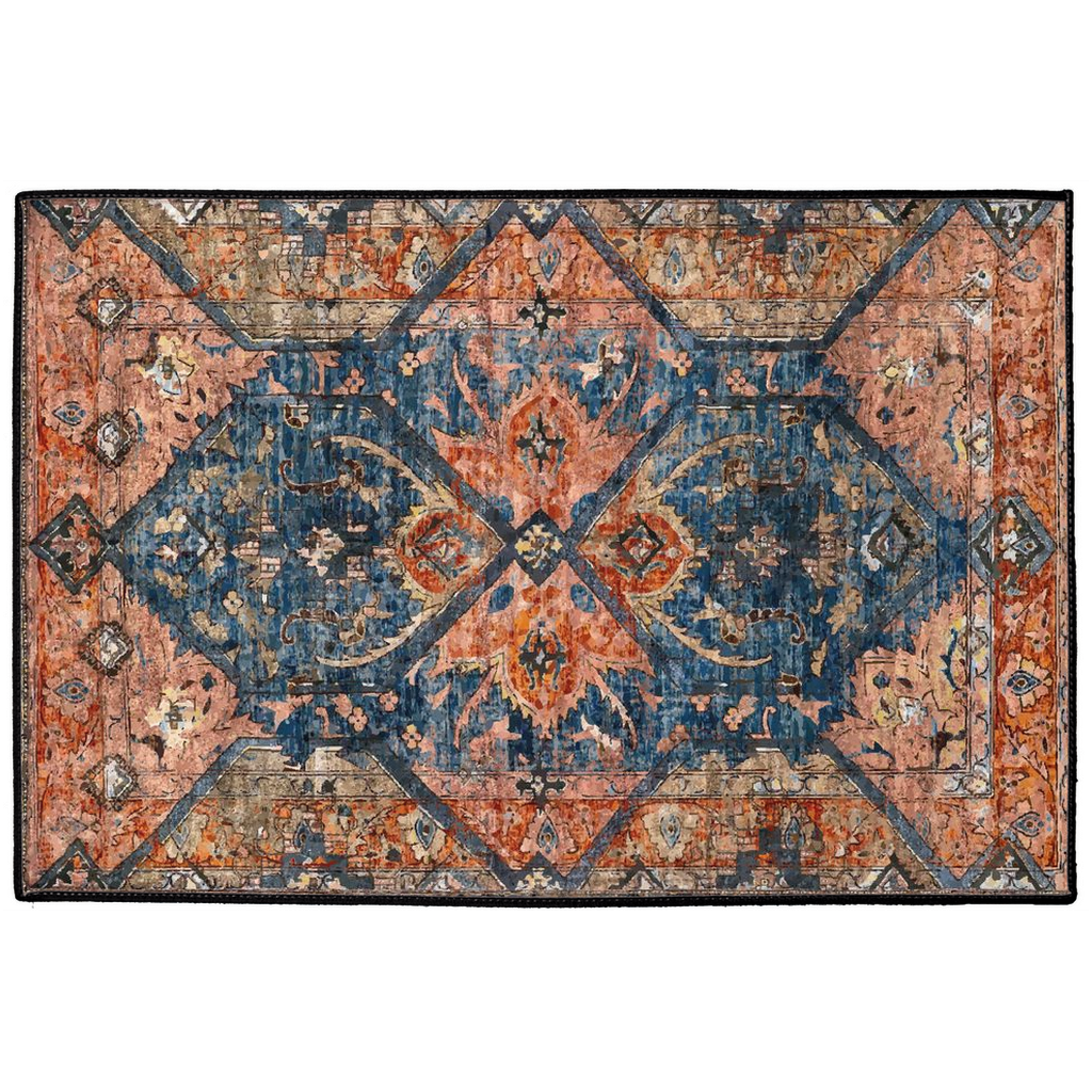 Khaju Persian Indoor/Outdoor Floor Mat Antique Blue Rust Red