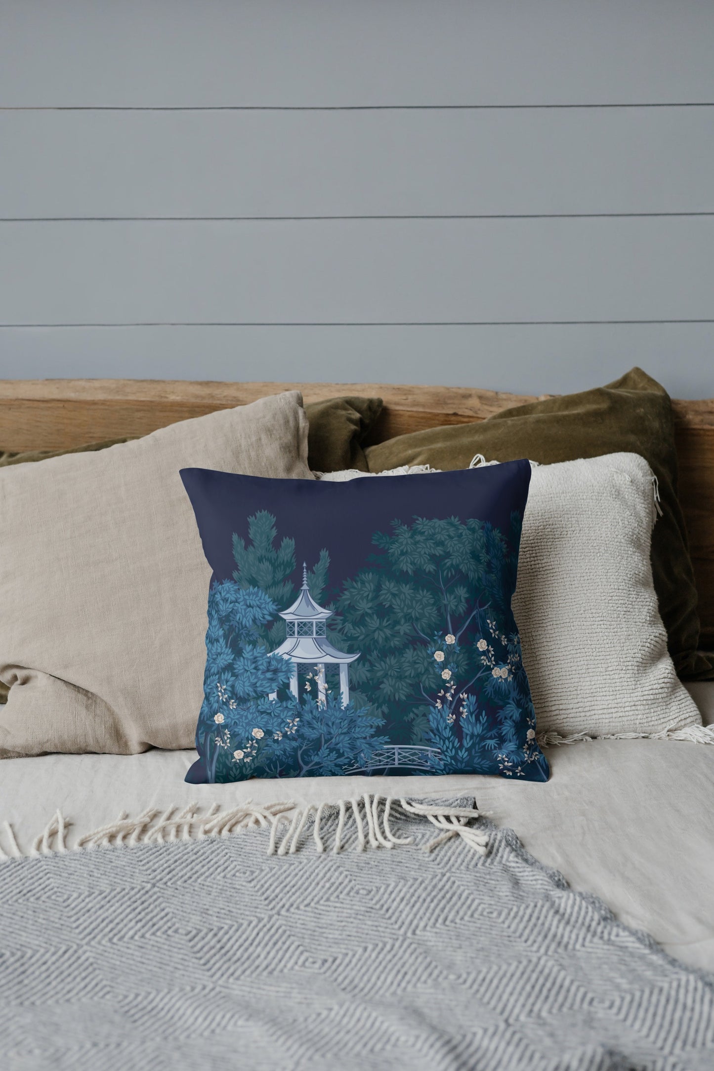 Japanese Pagoda Cotton Pillows Midnight Blue