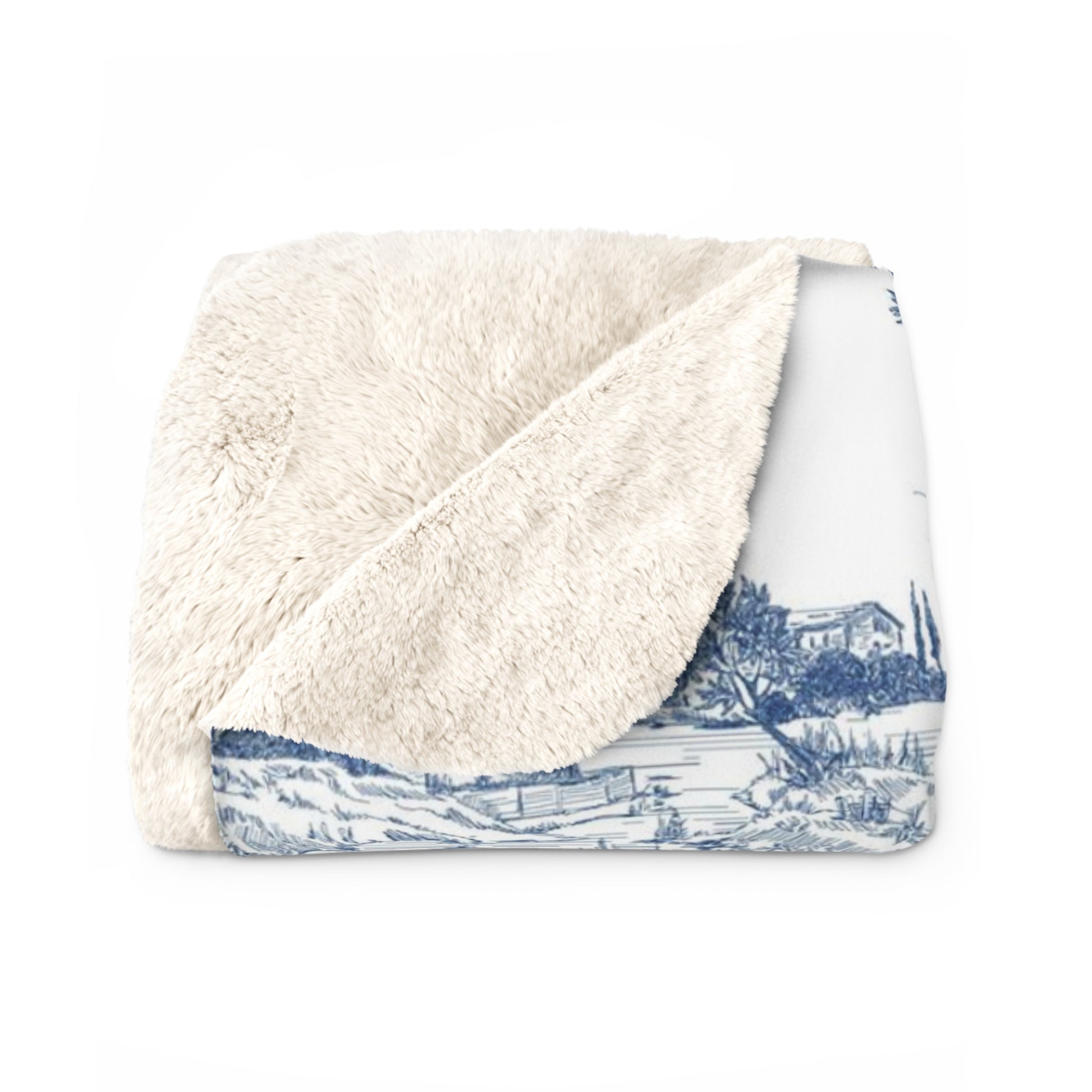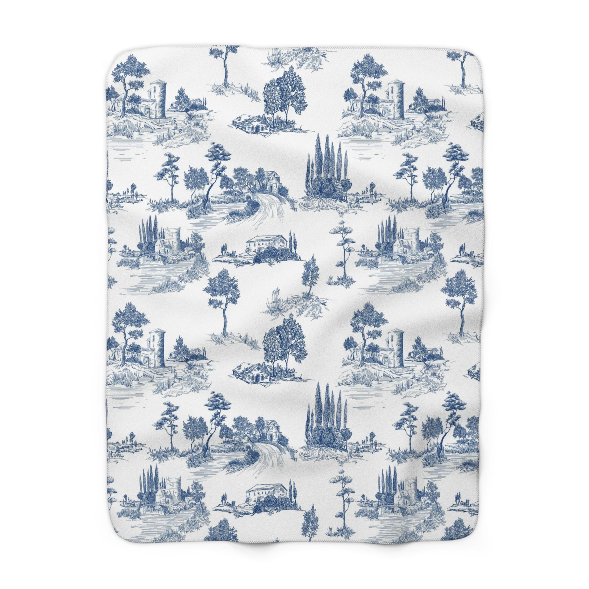 Navy Blue Toile de Jouy Fleece Lined Blanket