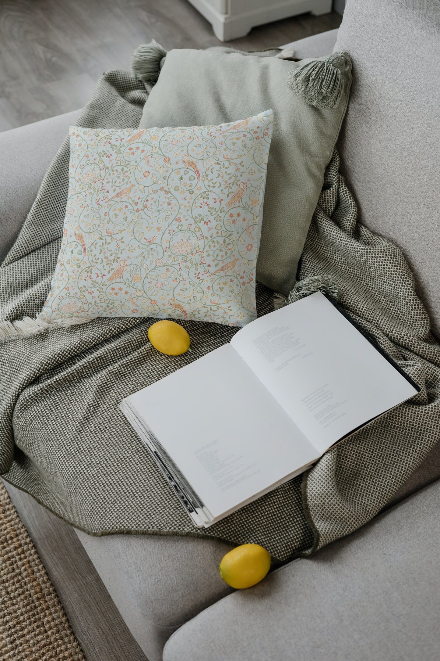 Newill Owl Cotton Throw Pillows William Morris Blue Peppermint Russet